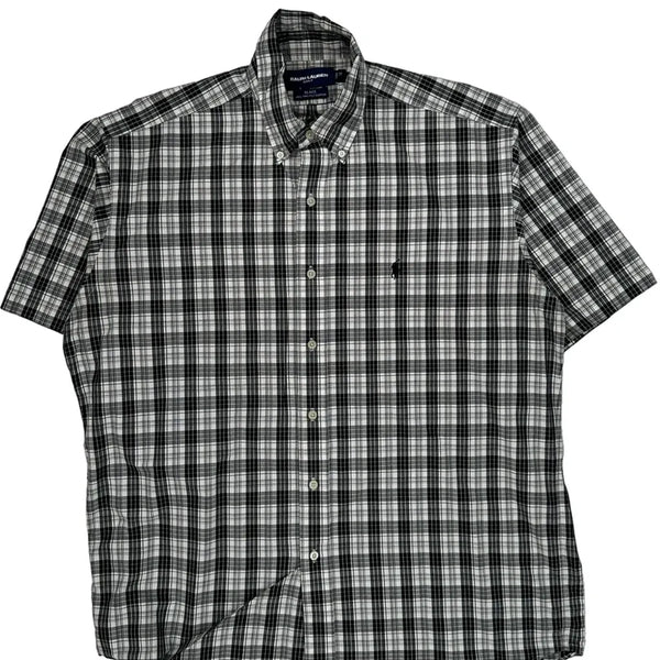 Blake ralph lauren checked short sleeve shirt - medium black & white cotton
