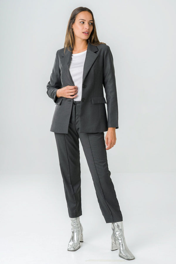 – Wool blazer with a straight cut and fitted waist