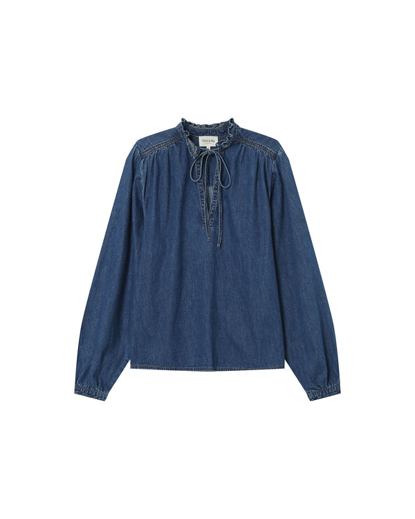 The Salsa long sleeve blouse revisits denim with a touch of delicate femininity.The pass decorated with small flying and the link to be given bring a romantic note to this piece of everyday life.The straight cut and the discrete gathers of the Salsa denim blouse structure the silhouette.The part has an open neck with a link to be knotted on the front.