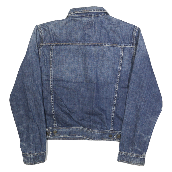 The jacket offers a regular fit that suits a variety of casual outfits. The absence of additional branding allows for versatile styling, and the slightly faded detailing adds character without compromising the overall uniform blue shade.