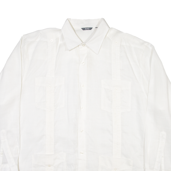 BOHIO Mens Plain Shirt White Long Sleeve XL