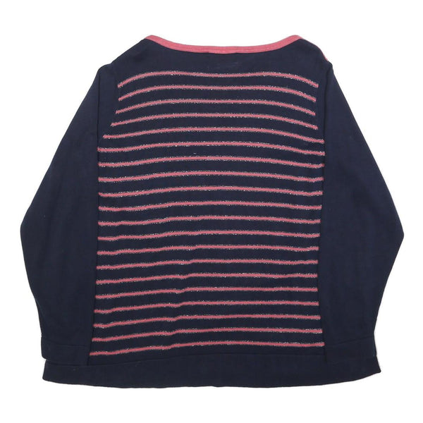 Bonmarche womens navy blue & pink striped plain jumper round neck basic knit 2xl