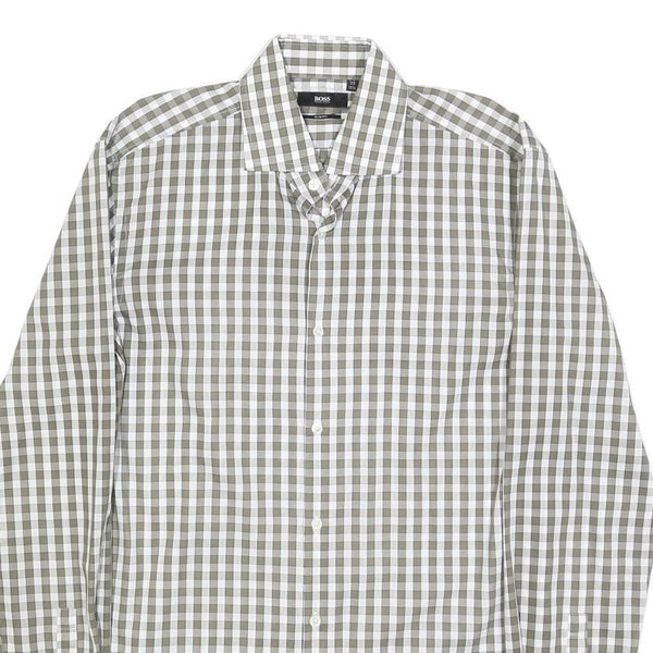 BOSS HUGO BOSS Mens Green & White Check Shirt M Cotton Classic Smart