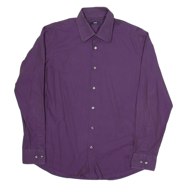 BOSS Mens Plain Shirt Purple Long Sleeve L