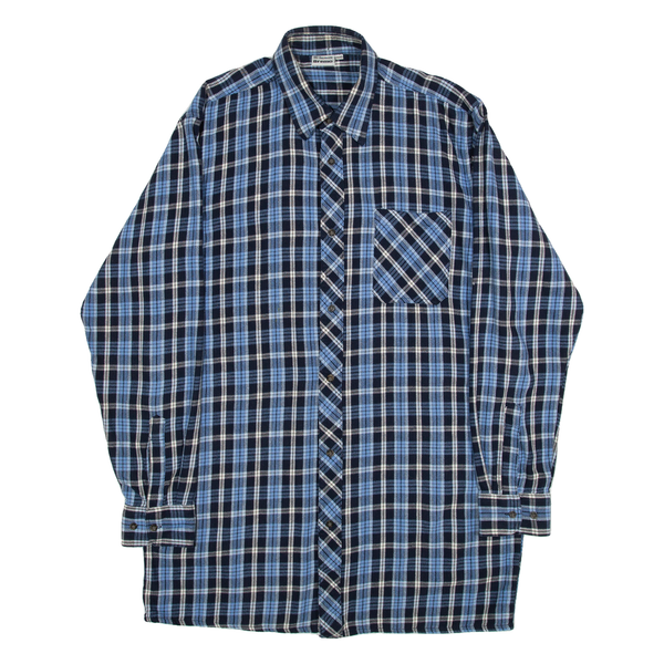 BREMO Mens Shirt Blue Check Long Sleeve L