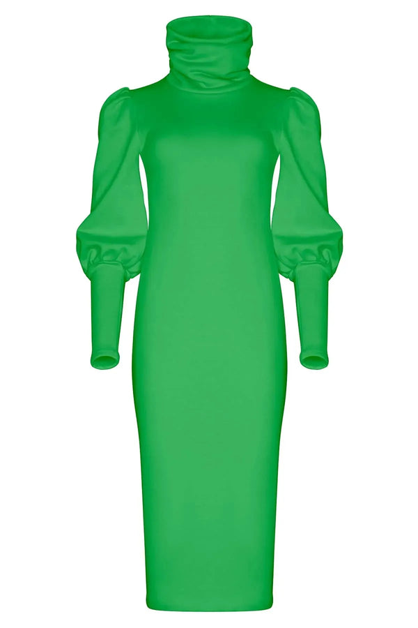 The Brynja dress is a longline, column adaptation of the iconic Logi jumper. Full bishop sleeves emerge from tucked shoulders and an augmented cowl neckline. These twists on a classic give the Brynja a sense of power and a dramatic streak.