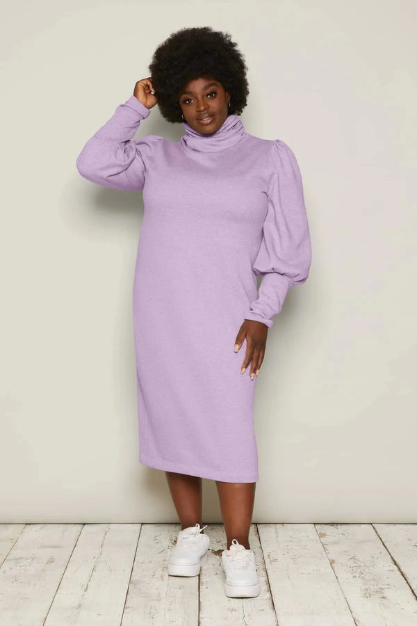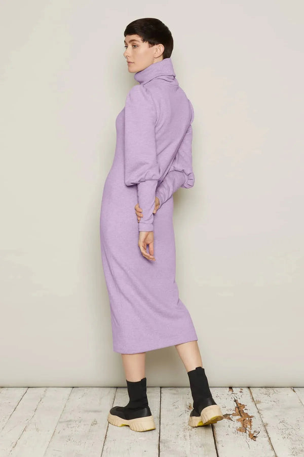 The Brynja dress is a longline, column adaptation of the iconic Logi jumper. Full bishop sleeves emerge from tucked shoulders and an augmented cowl neckline. These twists on a classic give the Brynja a sense of power and a dramatic streak.