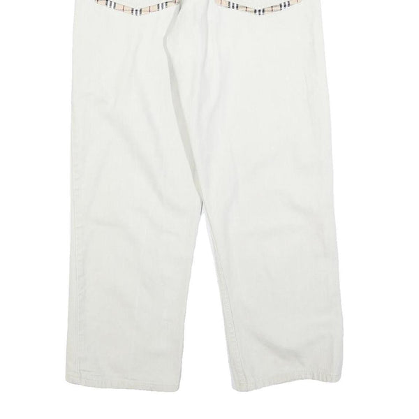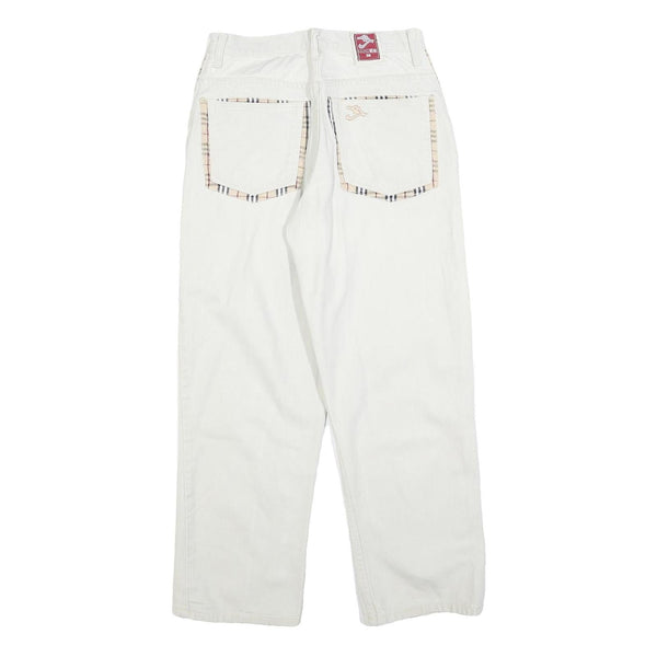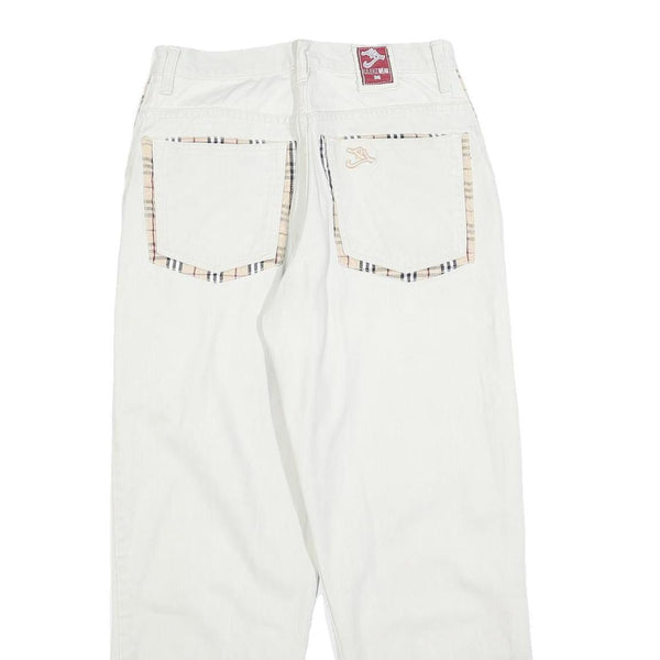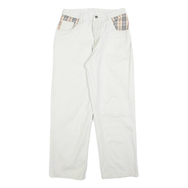 BULERZ Womens Jeans White Relaxed Straight Denim W28 L28 Checked Pocket Trim