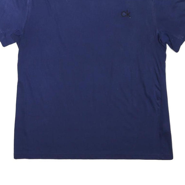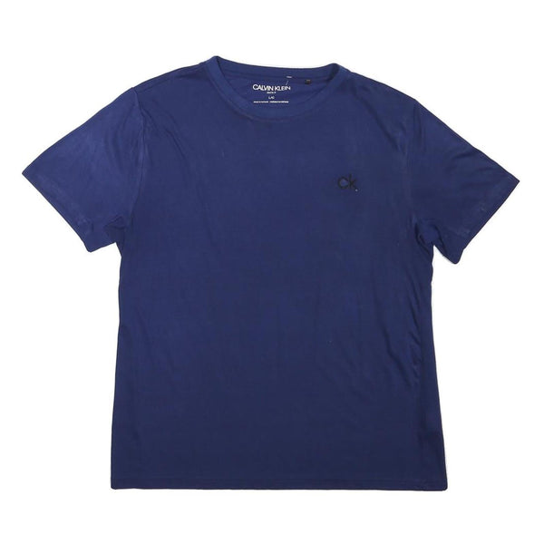 This men's Calvin Klein Golf T-shirt features a deep blue colour with a subtle 'ck' logo embroidered on the front chest, offering minimalistic branding synonymous with Calvin Klein's sleek aesthetic. The design is plain without any additional graphics or patterns, providing a versatile piece for casual or golfing attire.