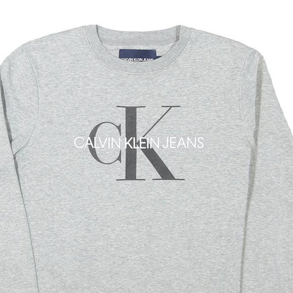 Calvin klein jeans womens grey cotton blend crew neck m logo sweatshirt