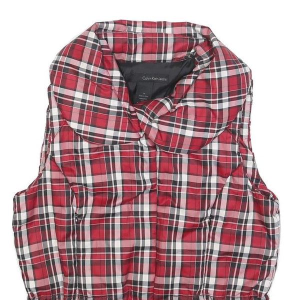 CALVIN KLEIN JEANS Womens Red & White Checked Puffer Jacket M Polyester Zip