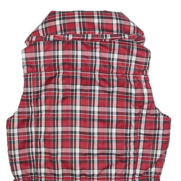 Calvin klein jeans womens red & white checked puffer jacket m polyester zip