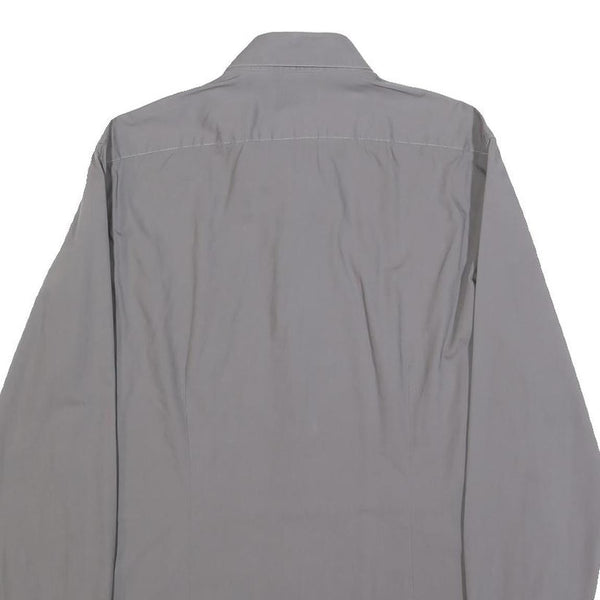 CALVIN KLEIN Mens Grey Plain Shirt S Cotton Blend Casual Button Down Long Sleeve
