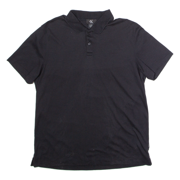 CALVIN KLEIN Mens Polo Shirt Black Striped L