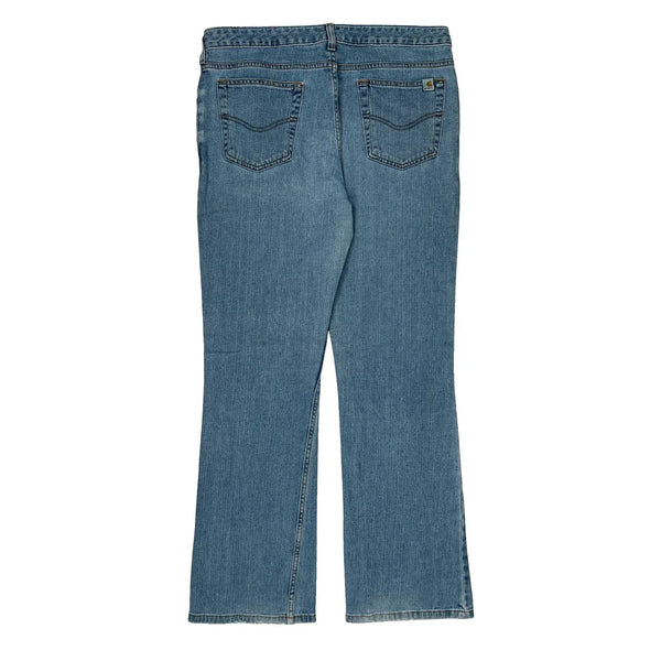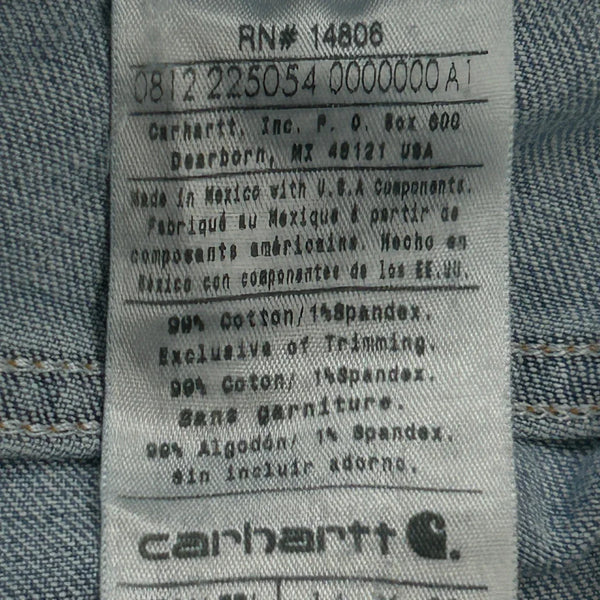 Light Wash Carhartt Jeans With Slight Wear At The Hem.