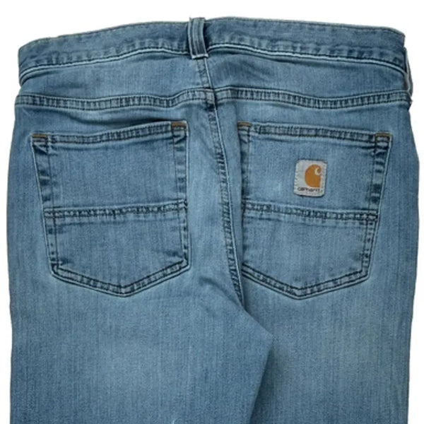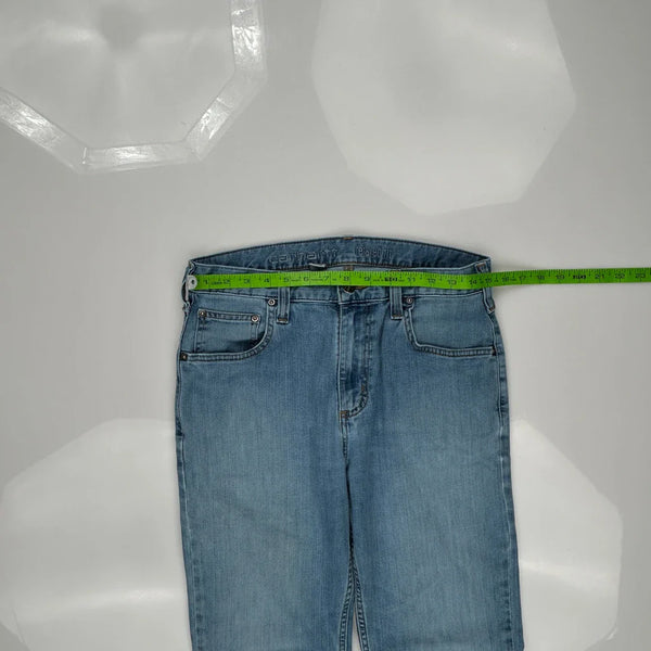Light Wash Carhartt Jeans With Minor Wear Marks.