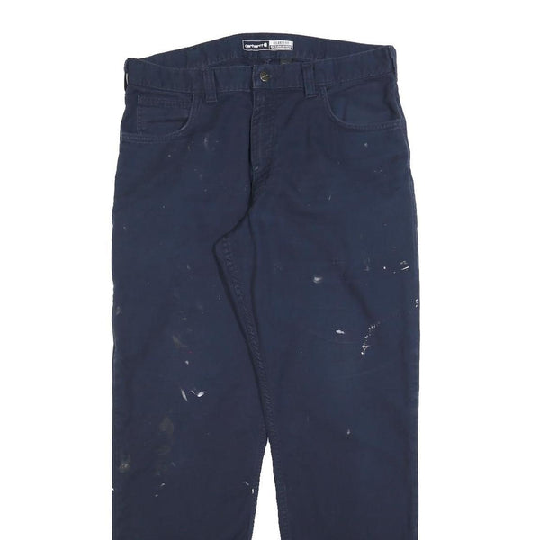 CARHARTT Mens Cotton Blend Navy Relaxed Straight Trousers W36 L32 Workwear Zip
