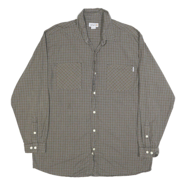 CARHARTT Mens Green & Brown Check Shirt XL Button Front Long Sleeve Casual