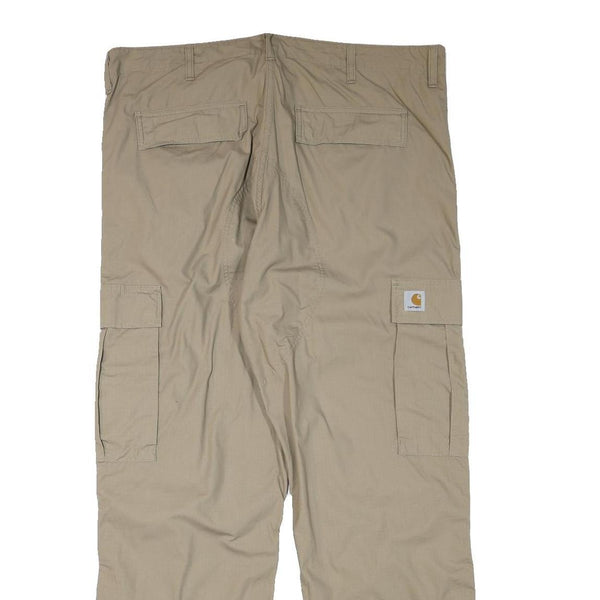 CARHARTT Mens Relaxed Beige Cargo Trousers W41 L32 Cotton Blend Zip Closure