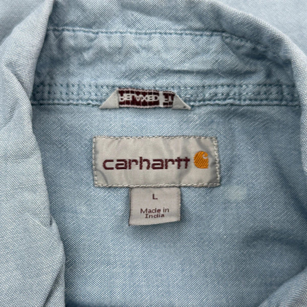 Light Blue Carhartt Shirt With Some Visible Marks On The Back.