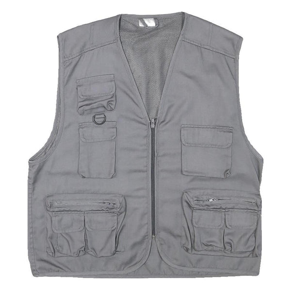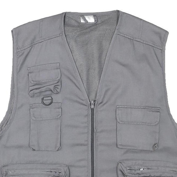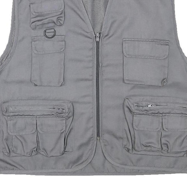 CHALET Mens Grey Utility Jacket L Polyester Blend Plain Zip Pockets Vest Style