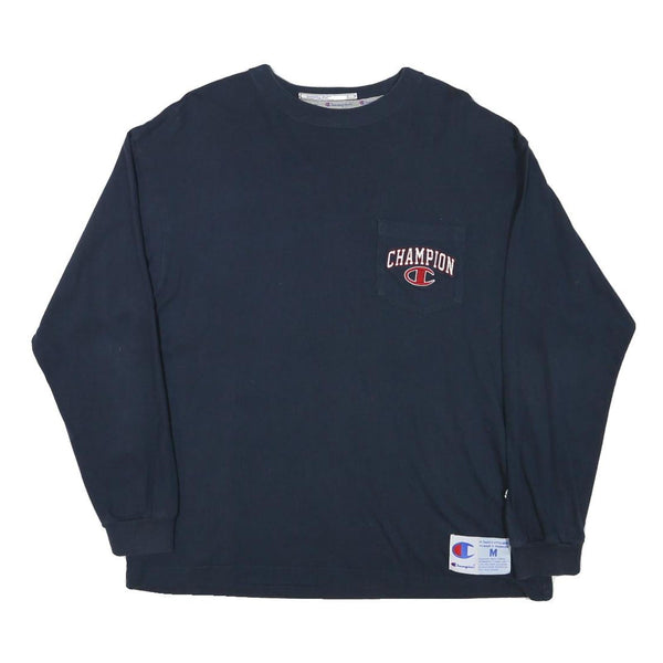 CHAMPION Mens Navy Blue Graphic T-Shirt M Long Sleeve Crew Neck Casual Sport