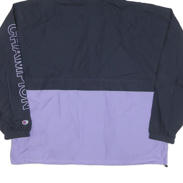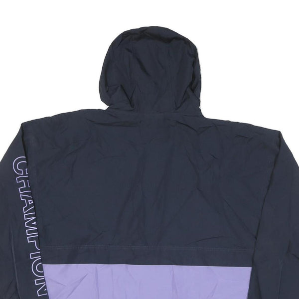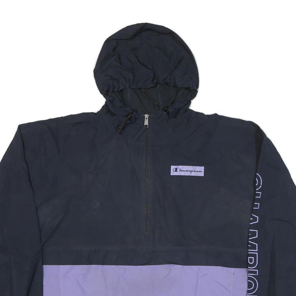 CHAMPION Mens Navy & Purple Half Zip Nylon Jacket 2XL Hooded Sportswear Casual