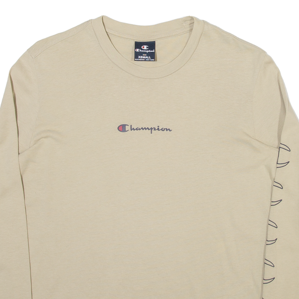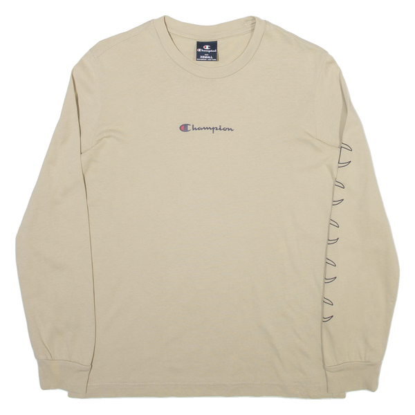 CHAMPION Mens T-Shirt Beige Long Sleeve XS