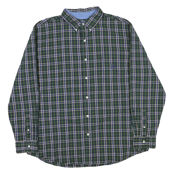 CHAPS Mens Green & Blue Check Shirt 2XL Button-Down Collar Long Sleeve Cotton
