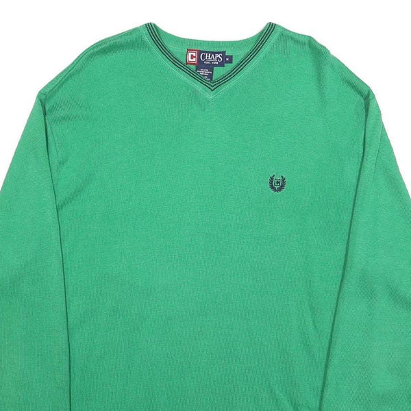 Chaps mens green plain v-neck basic knit jumper m cotton lightweight classic