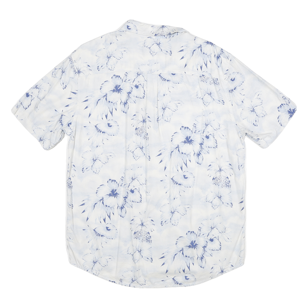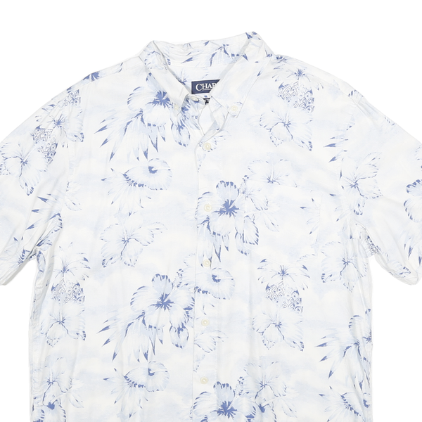 CHAPS Mens White & Blue Floral Pattern Short Sleeve Shirt M Casual Summer