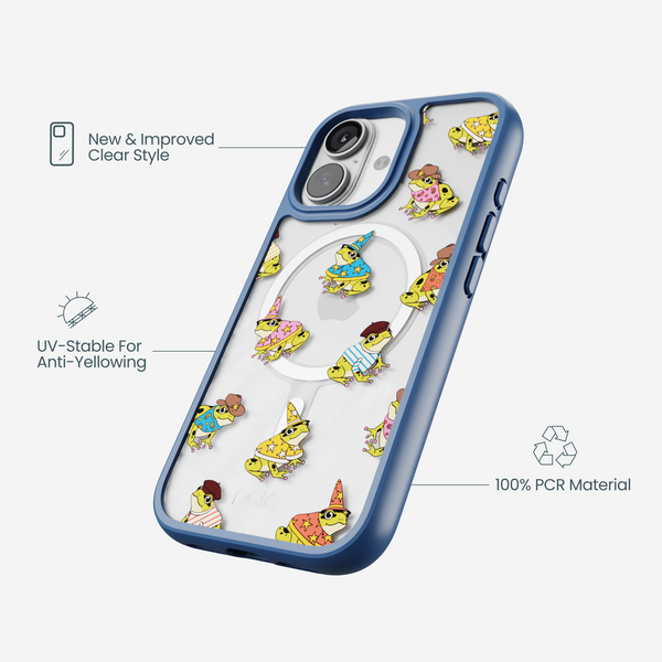 Clear fancy frogs iphone 17 case with true blue ridge (magsafe included)
