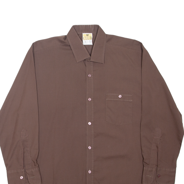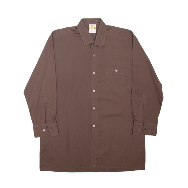 CLUB Mens Plain Shirt Brown Long Sleeve M