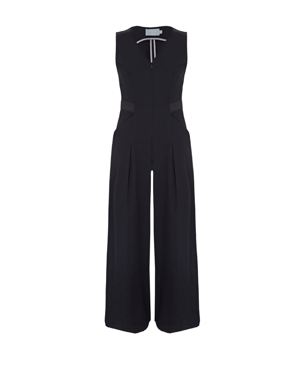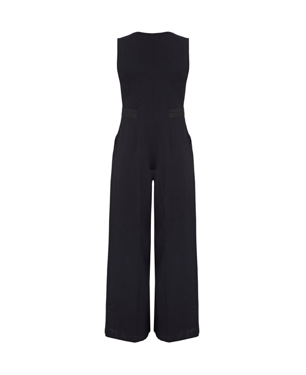A modern classic, this jumpsuit tucks at the front and has thoughtfully placed contrast detailing on the shoulder and at the waist.