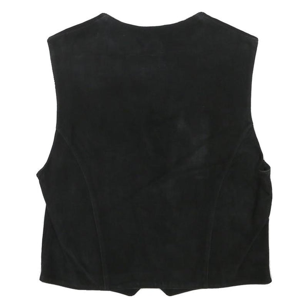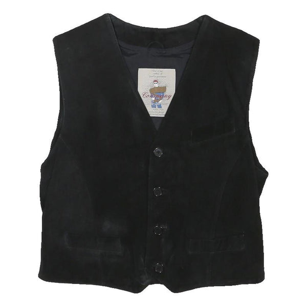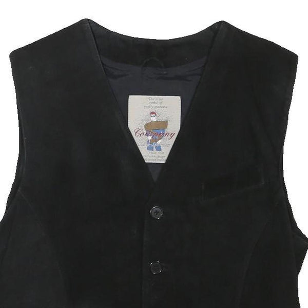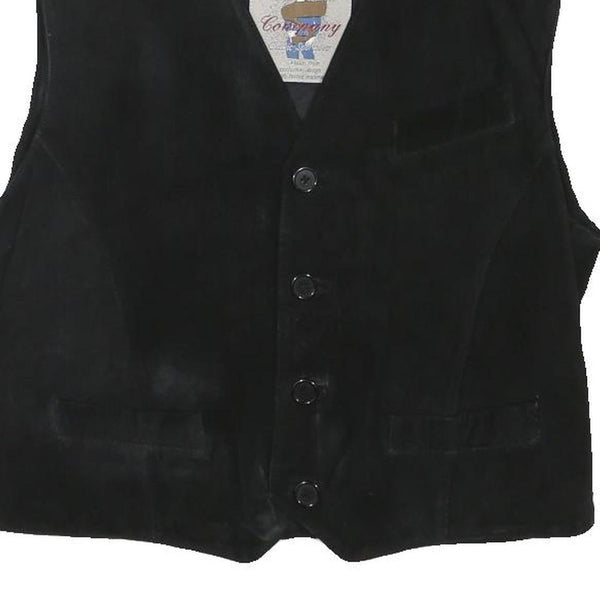 COMPANY Mens Black Leather Waistcoat XS Button Closure Classic Fit Plain Vest