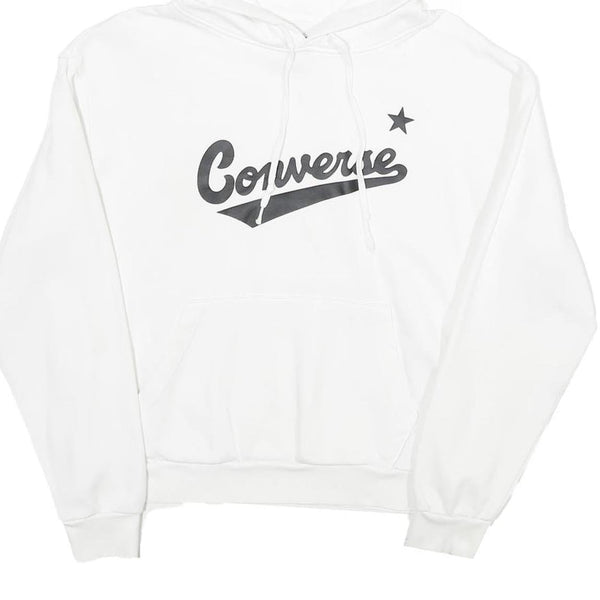 CONVERSE Womens White Hoodie M Cotton Blend Casual Pullover Hooded Sweatshirt