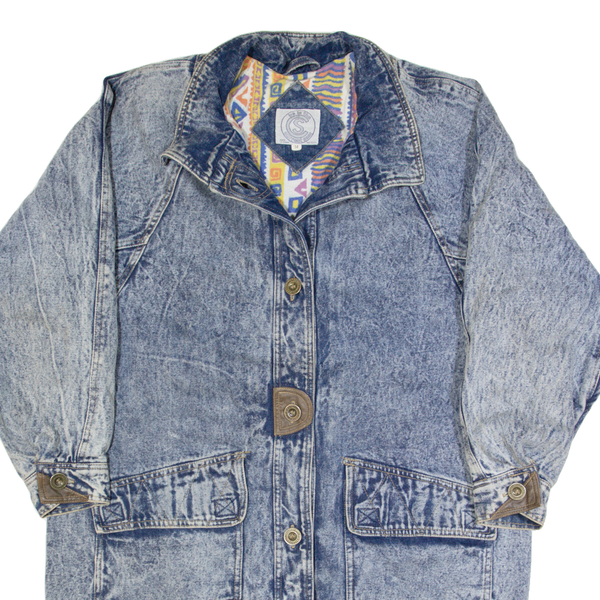 CURRENT SEEN Acid Wash Womens Overcoat Coat Blue 90s M