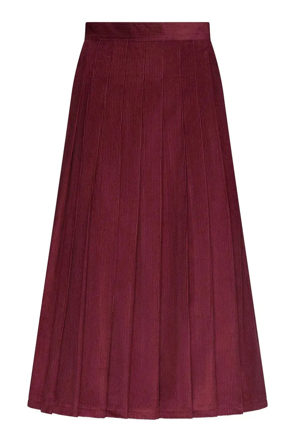 Weighted pleats give the Dagfari its swinging movement. This full skirt gathers at the waist before draping down to the calf. Fastened by a back zip, with side pockets that are perfectly cut into its pleats.