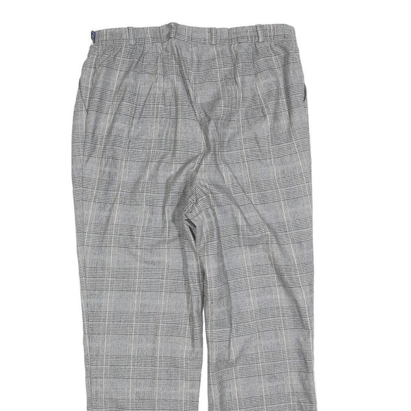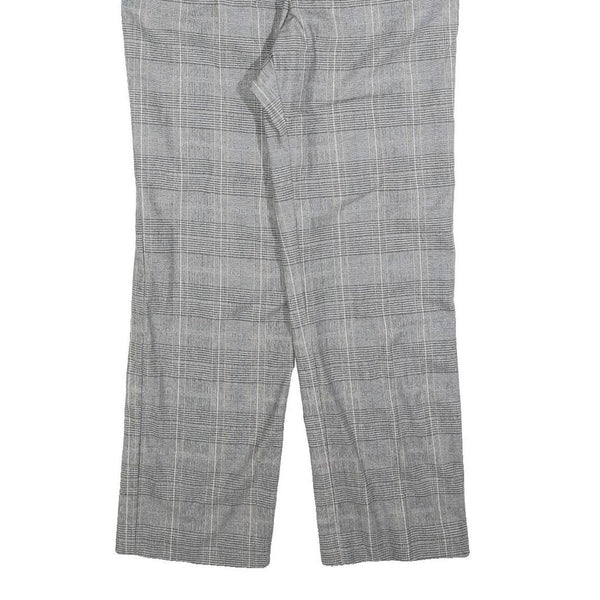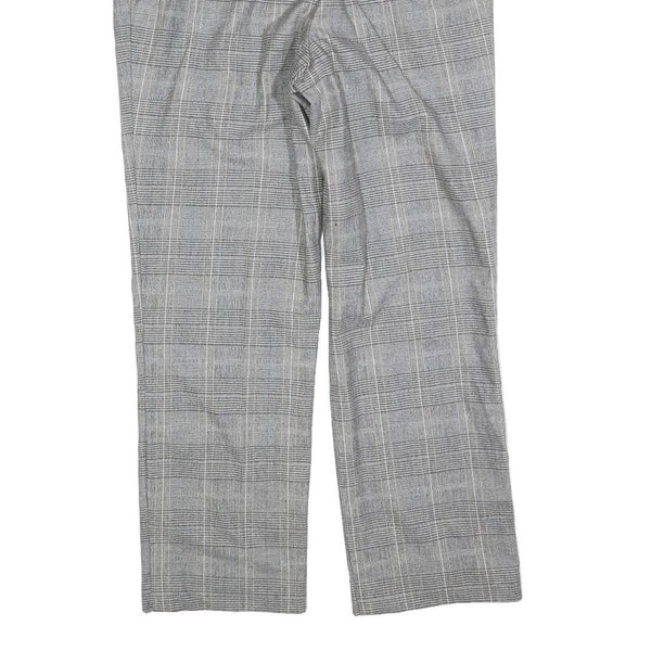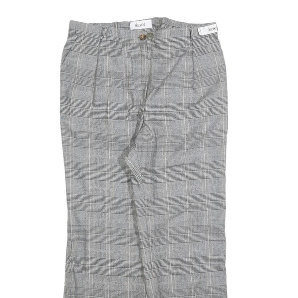 DELMOD Womens Wool Blend Grey Check Regular Straight Trousers W34 L28 Classic