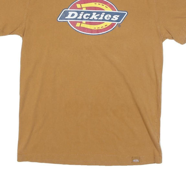 DICKIES Mens Brown Logo T-Shirt S Short Sleeve Crew Neck Cotton Blend