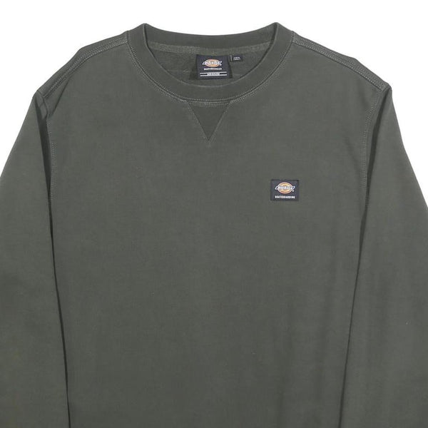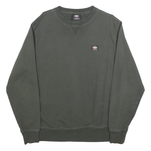 DICKIES Mens Green Crew Neck M Small Logo Patch Cotton Sweatshirt Workwear