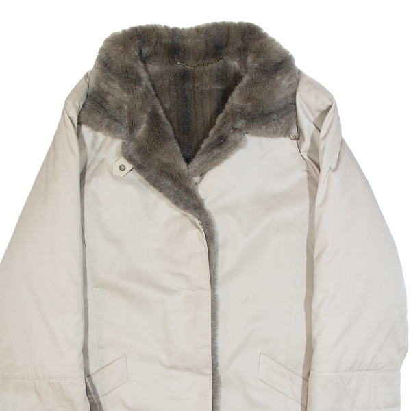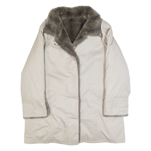 DIOLEN Faux Fur Lined Womens Overcoat Coat Grey 90s L