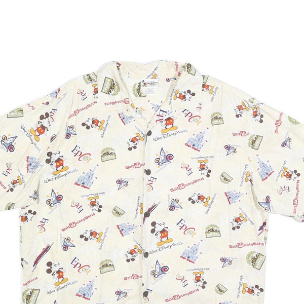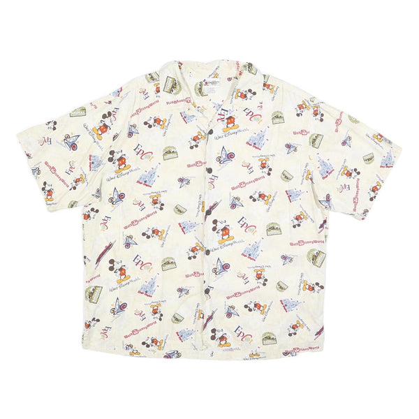 DISNEY Mens White & Multicolour Casual Shirt L Cotton Walt Disney World Graphic