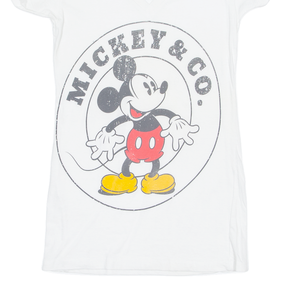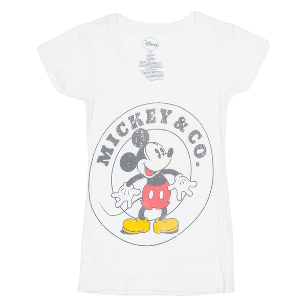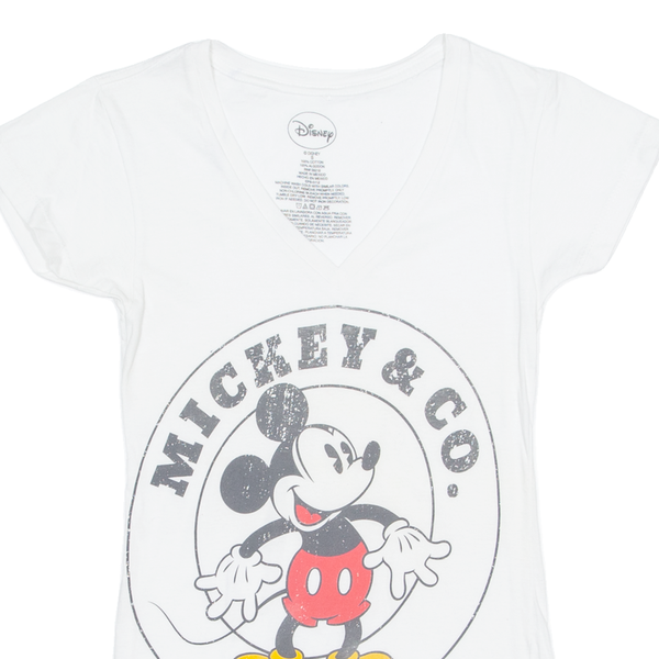 DISNEY Mickey Mouse Womens T-Shirt White V-Neck S