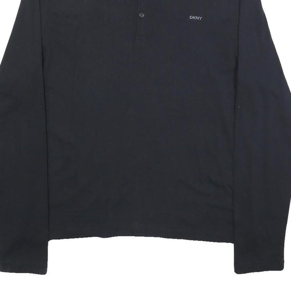 DKNY Mens Black Long Sleeve Plain Polo Shirt 2XL Cotton Blend Classic Fit