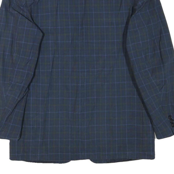 E THOMAS Mens Blue Checked Classic Jacket S Wool Blend Button Closure Stylish