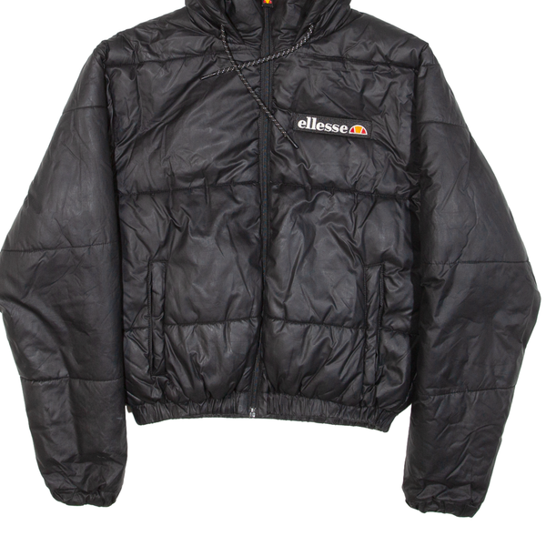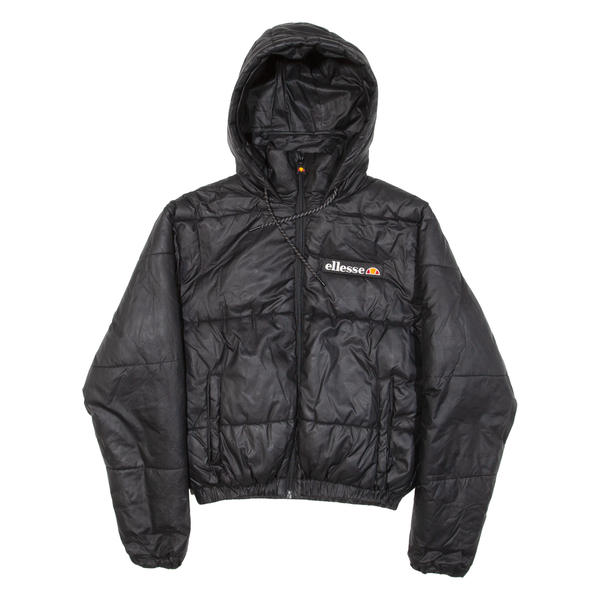 ELLESSE Insulated Cropped Womens Puffer Jacket Black Hooded UK 4