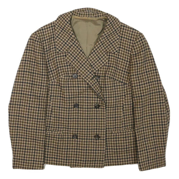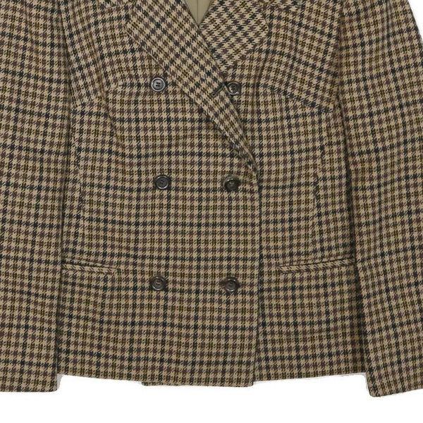 ERLE FZ Womens Brown & Black Double Breasted Jacket S Wool Houndstooth Button