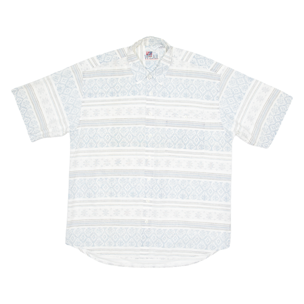 ESQUIRE FASHION Mens Shirt White 90s Crazy Pattern L