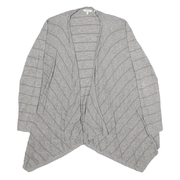 FAT FACE Womens Grey Striped Plain Open Front Jumper UK 14 Cotton Blend